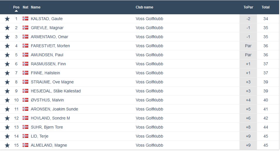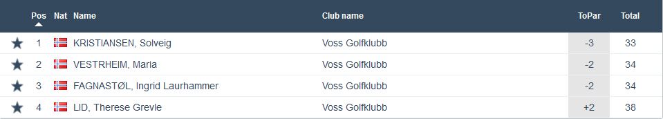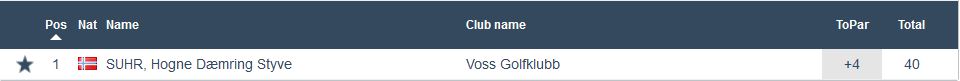 Årets fjerde Superrunde vart unnagjort onsdags kveld. 27 deltakarar og deltaking i alle klassar. Beste score i dag var -3 og tilhøyrde Solveig Kristiansen som då også vann klasse C. I den klassen vart ho tett fulgt av Maria Vestrheim og Ingrid Laurhammer Fagnastøl som også hadde -2. I lag med dei på dagens nest beste score var også Gaute Kalstad. Med -2 som sagt så var det nok til å vinne dagens største klasse, nemleg klasse B. I klasse A vann Rune Rogde på +2. Svært jamnt her med 6 spelarar alle innanfor 2 slag. I klasse D var det berre ein deltakar og her fekk Hogne Dæmring Styve Suhr eit fint resultat på +4. I klasse E var det også berre ein deltakar og her gjekk Jarle Vestrheim på -1, Resulat for alle klassar finn du under.