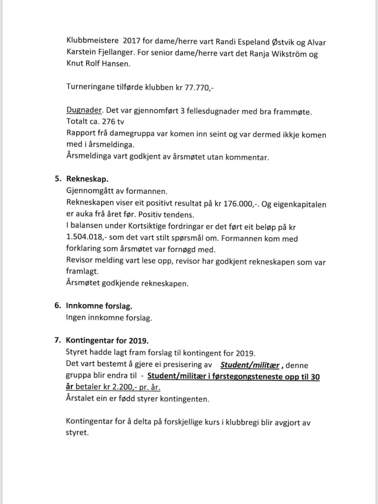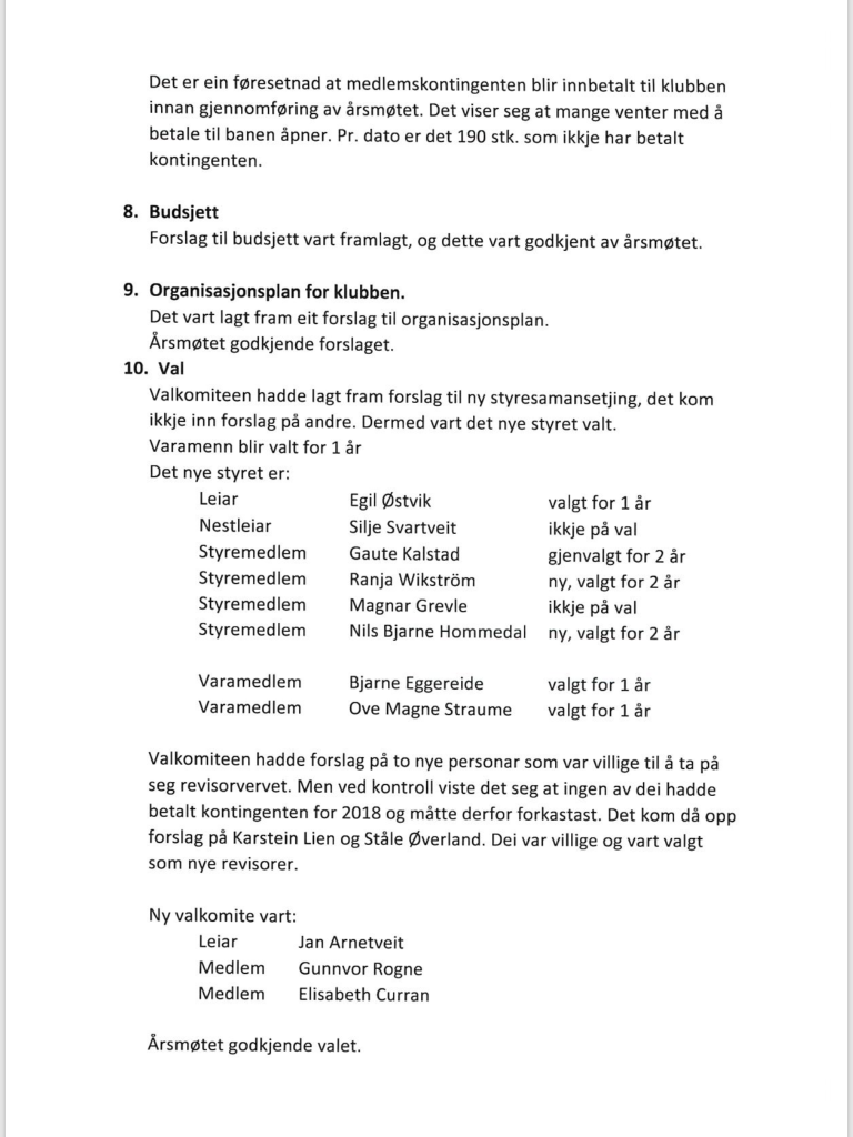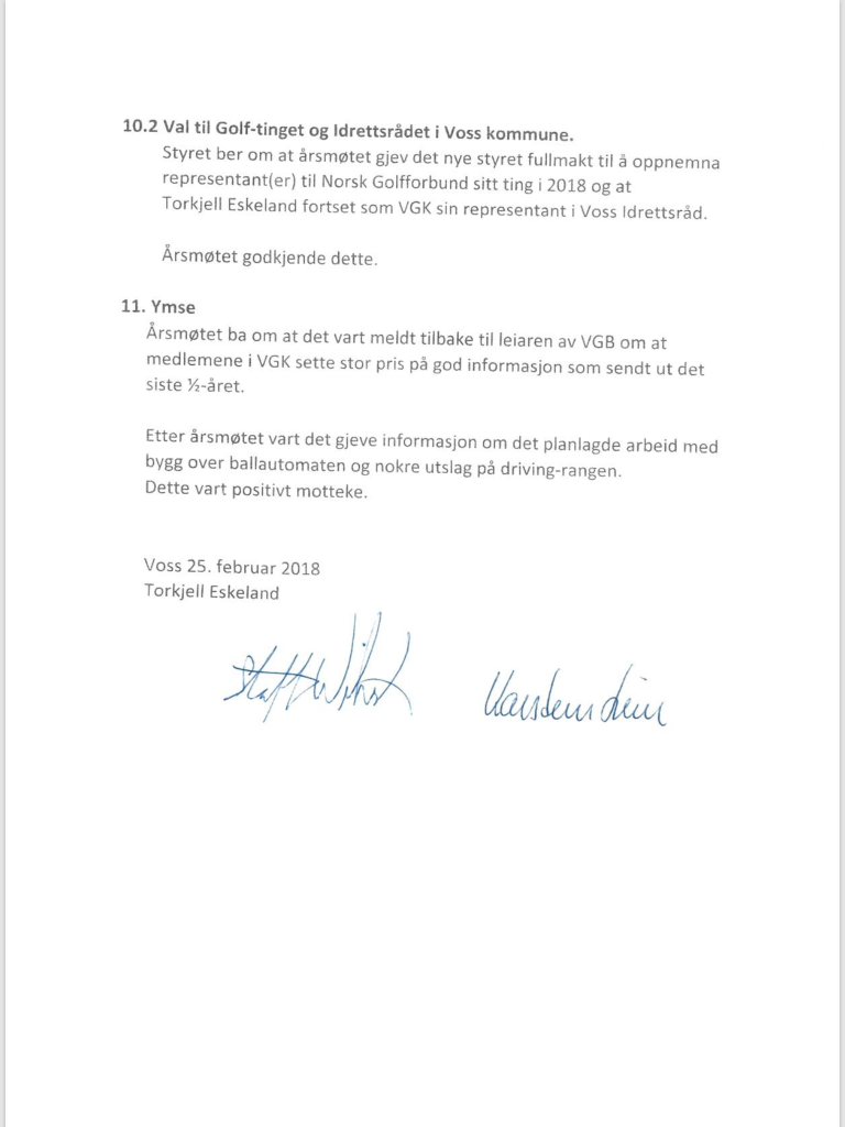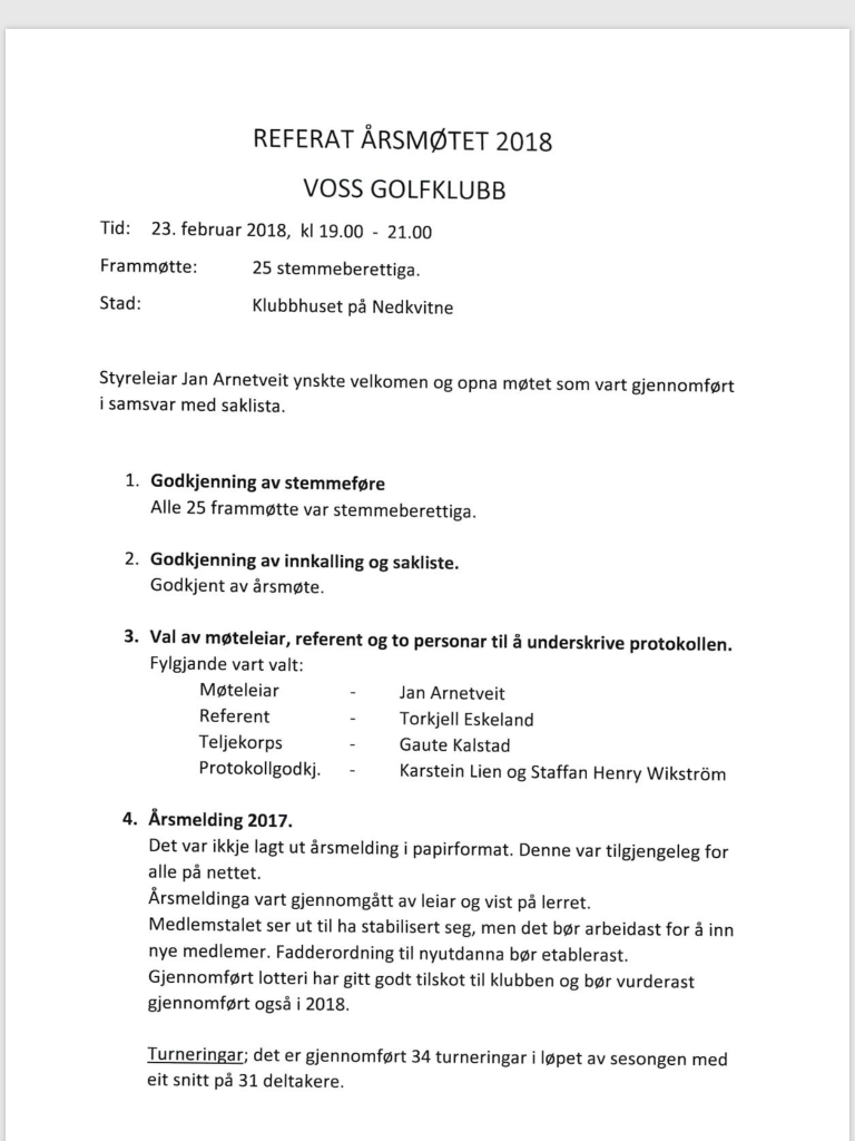 Referat frå årsmøte i Voss Golfklubb 23. februar.