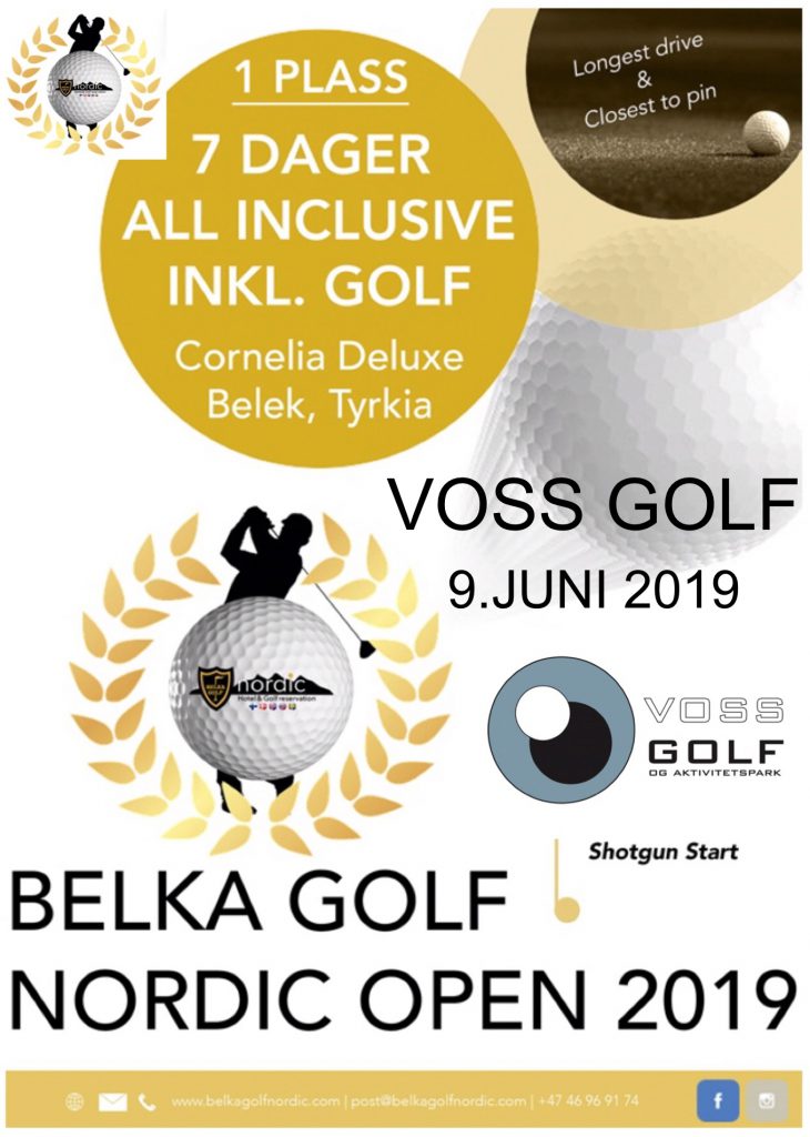 Vi har igjen gleden av å ønska velkommen til ein av fjorårets mest populære turneringar: Belka Golf Nordic Open, som arrangeres på 24 baner i løpet av sommaren 2019. Vinneren på Voss er den som har beste nettoscore uansett klasse. Det spilles slaggolf med «Maksimum score pr hull, hullets par + 5».