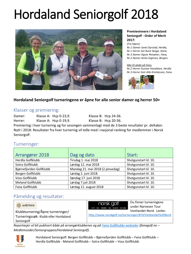Me minner om påmeldingsfrist til Hordaland Seniorgolf sin turnering på Voss no på søndag 17.juni⛳. Turneringen er åpen for alle 50+, og du treng ikkje vera medlem i Norsk Seniorgolf for å delta🏌️♀️ Så meld deg på i GolfBox innan kl.22 i kveld – YR seier til og med at sola skal kikka fram igjen!🏌️♂️☀🏌️♀️😎