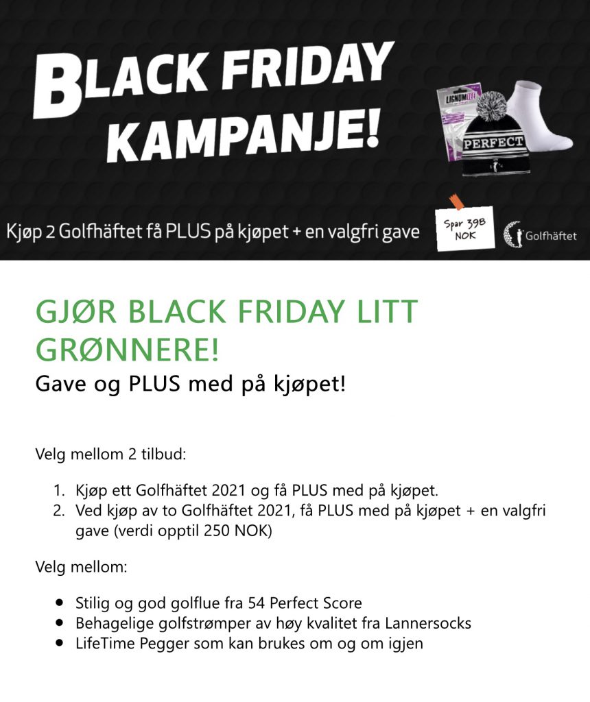 I tillegg gjentas fjorårets Black Friday, kor du i perioden 23-29.nov., ved kjøp av Golfheftet 2021 får med Golfheftet PLUS verdt kr.199 på kjøpet, som gir deg rett til å spela fleire gonger med Golfheftet på ei rekke golfbaner🏌️♀️