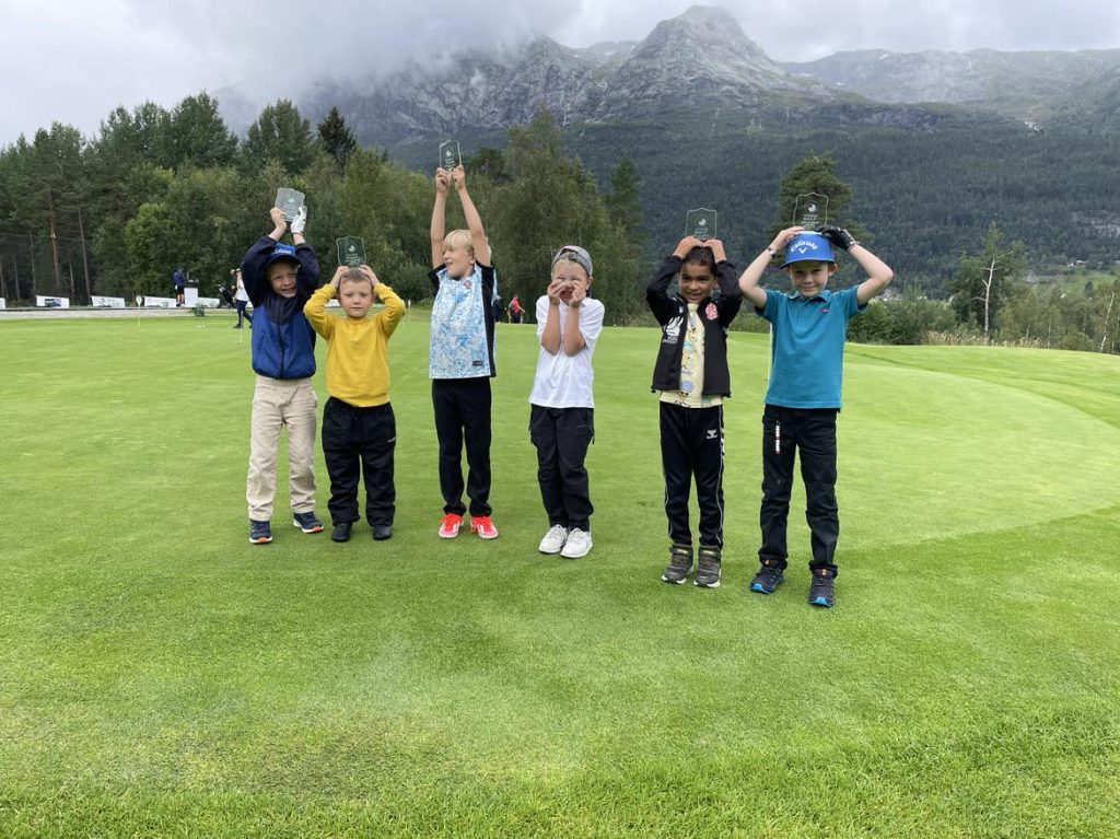 For dei yngte var det ei kort løype med seks hol mellom 50-100 meter. Dei sju gutane som var med her spelte scramble og fekk klyra golfbil, noko som dei var særs nøgde med. Kjekt også å nemna at tre av spelarane her var frå Voss GK.