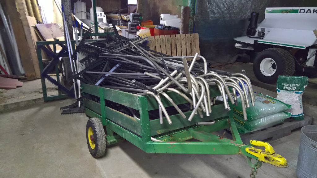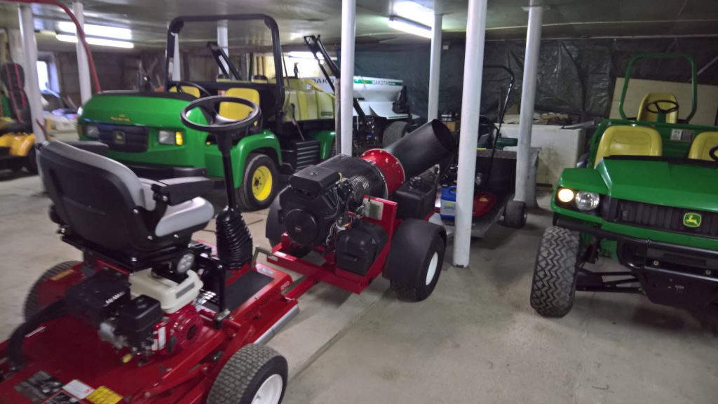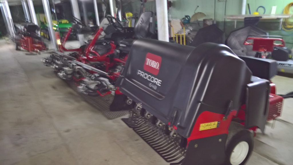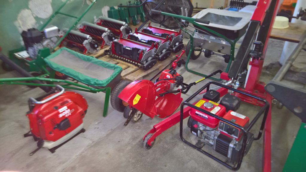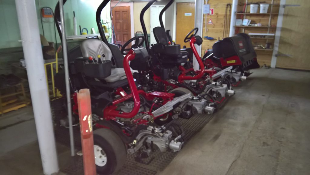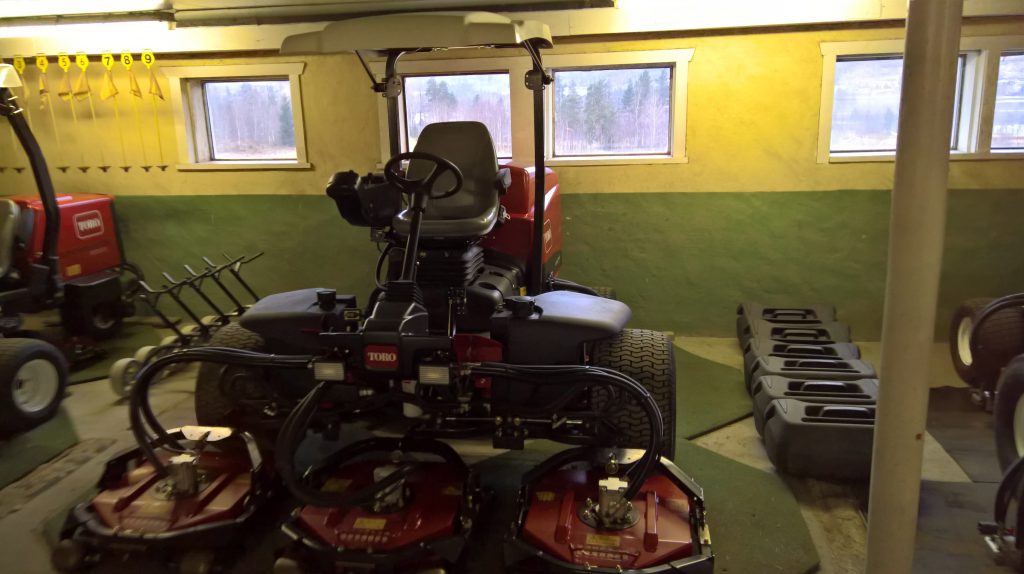 For å kunne oppretthalda ein flott golfbane så er maskiner og utstyr eit av områda me legg ned aller mest pengar, og me har ein maskinpark verd fleire millionar ståande på låven til Per. Vedlikehald av ein så kostbar maskinpark er sjølvsagt heilt vesentleg, og spesielt etter sesongslutt er det mange timar som vert lagt ned i dette arbeidet.
