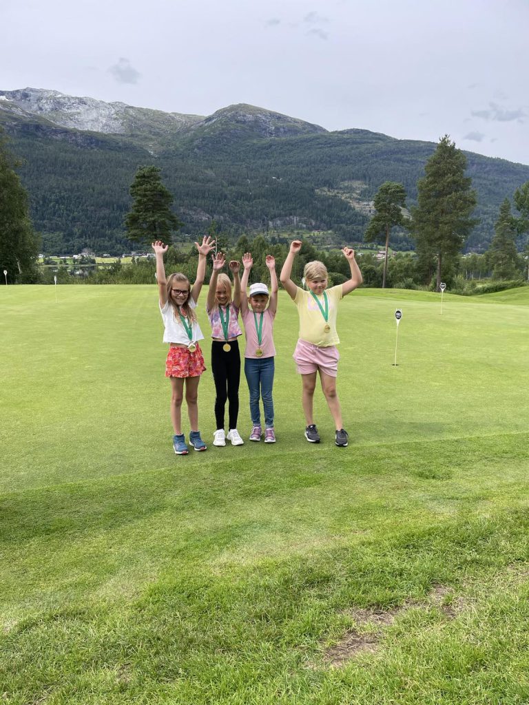 Mikkel Sætre Svartveit tok ein flott 4.plass på -6 i klassen mixed 13-15 år, berre to slag på sigeren. I klassen jenter 9-12 var det tre jenter frå Voss med. Susanna F.Hauge, Kjersti H. Kvamme og Astrid N. Hofseth gjekk 9 hol. I klassen 6-8 år gjekk Gunnar F. Hauge og Millian Gjersdal 5 hol. Eller dei gjekk jo ikkje! Dei kjørte jo golfbil! 😉