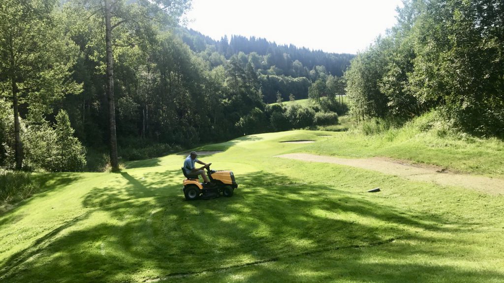 Nytt 52 utslag på hol 3, og oppretta nytt 46 utslag hol 9 har blitt lagt med ferdiggras no i juli, og er klar til bruk. Spesielt 46 utslaget på hol 9 har vore djupt sakna, så me er veldig glad for at me no kan fjerne det midlertidige utslaget, og tilby eit fullverdig utslag også for damene og andre på hol 9.