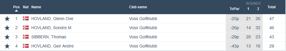 Ingeborg Hovland var åleine i klasse E-Junior Dame og fekk til to fine rundar på tilsaman 61 over par. I stablefordkonkurransen vart det svært jamnt og Glenn Ove Hovland tok sigeren berre eitt lite poeng framfor Sondre M Hovland.