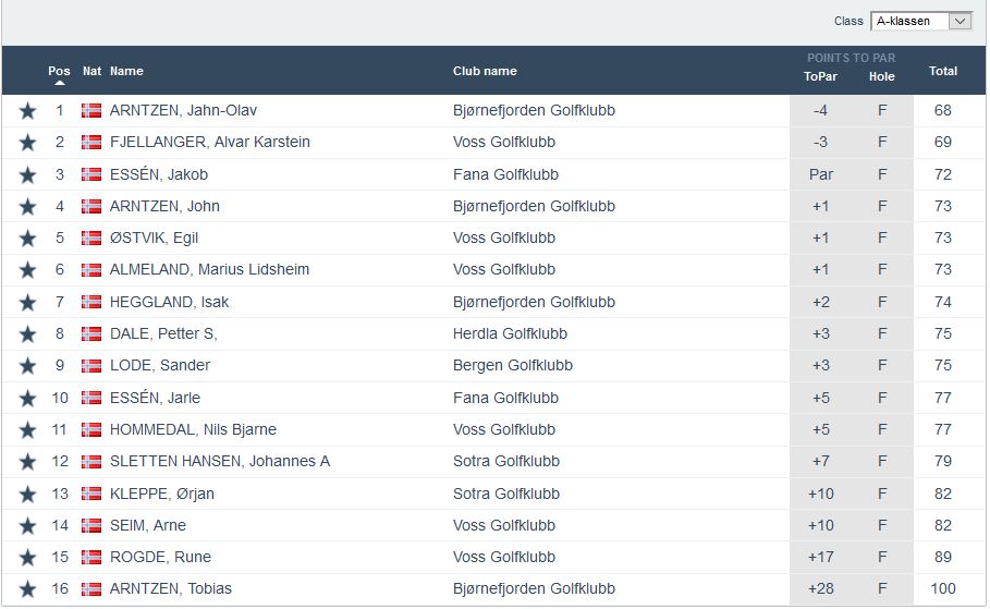 Heile 41 spelarar påmeldt til denne oppvarminga før Narvesen Tour søndag 4.august. Det blei spelt i heile 6 klassar og resultata for kvar klasse føl under: