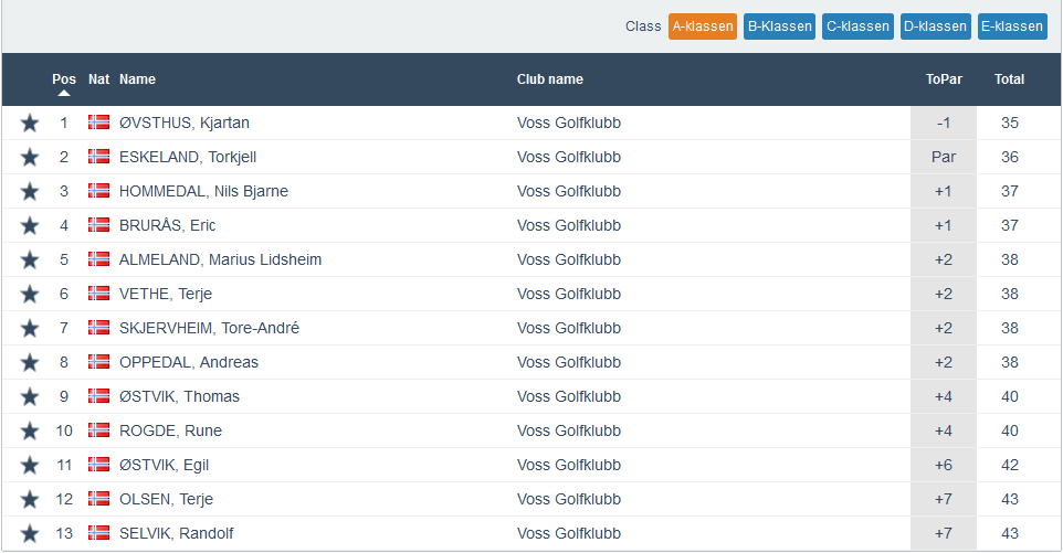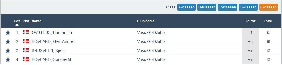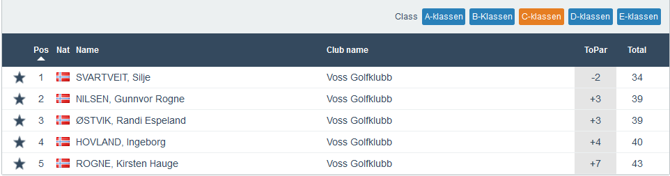 Ny Superrunde og denne gongen var det svært jamnt i alle klassar. Best av alle i dag var Silje Svartveit som vann på -2. Ho vann jo då også klasse C. Så var det tre spelarar på -1 og alle dei vann kvar sin klasse. Kjartan Øvsthus vann klasse A, Glenn Ove Hovland vann klasse B og Hanne Lin Øvsthus vann klasse C.