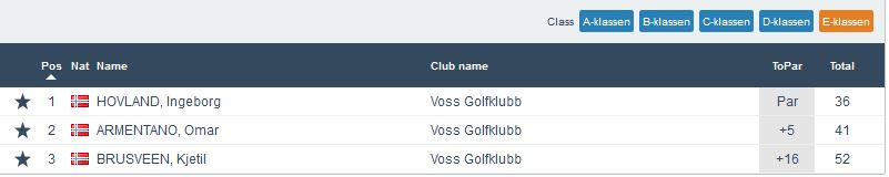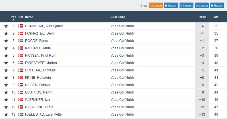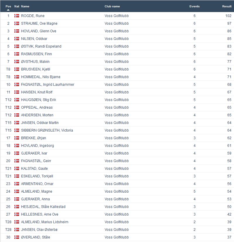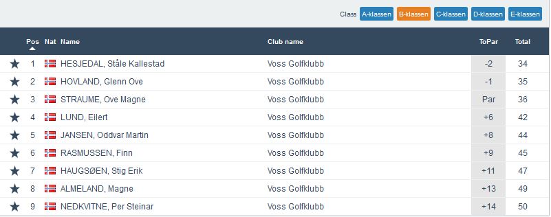 Samanlagt leiar Runde Rogde med 102 poeng, men rett bak jagar Ove Magne Straume med 97. Men med tanke på at det er ein runde igjen neste onsdag samt ein siste runde med 2×9 hol laurdagen etter så er det framleis fleire som kan blande seg inn. Dette vil de sjå på samanlagtlista som ligg under resultatlistene frå kveldens runde.