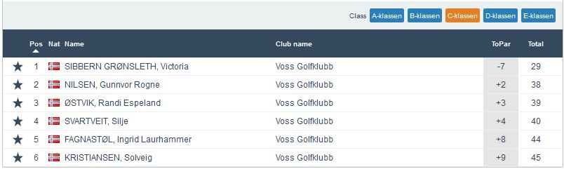God deltaking med 32 spelarar og ikkje minst i alle klassar for første gong i år! Vinnaren med imponerande -7 vart Victoria Grønsleth Sibbern. Det må også være ein av dei beste scorane som har vore på Superrunden i år utan at me har fått sjekka alle resultata i 2019. Ho vann då også klasse C. Flott også å sjå at Tobias Kleppe stilte til start i Klasse D. Første gong det er deltakar med i den klassen i år, og +8 er langt i frå ein dårleg debut. Ellers vann Nils Bjarne Hommedal klasse A på imponerande -4. Ståle Kallestad Hesjedal vann klasse B, han også under par. med -2. I klasse E gjekk Ingeborg Hovland på par og vann klassen. Me gratulerar vinnarane og takkar alle som deltok i kveld for godt oppmøte!