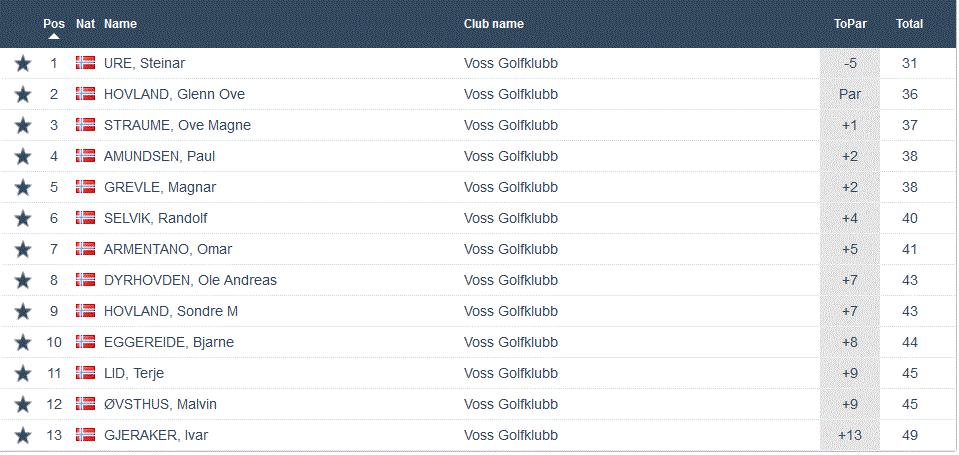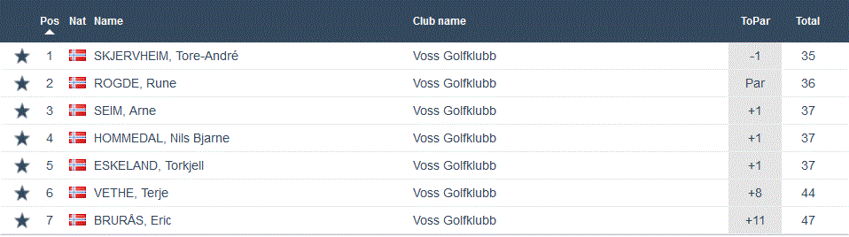 Det nermar seg slutten på vårens Superrunde og i kveld vart den nest siste runden unnagjort. Steinar Ure klart best i dag med -5. Ikkje berre gjorde dette at han vann klasse B, men tok også innpå litt meir på Sondre M Hovland samanlagt. Sondre leiar med 123 poeng framfor Therese Grevle Lid på 103 og Steinar Ure no på 97. Ellers var det mange andre fine scorar og deltaking i alle klassar denne kvelden. Tore-André Skjervheim vann A-klassen på -1. Gunnvor Rogne Nilsen vann C-klassen, ho også på -1. Mikkel Svartveit Sætre vann D-klassen på +7 og Mattis Kaldenbach vann E-klassen på +2-. 29 deltakarar denne kvelden og under ser de resultata frå kvar klasse.