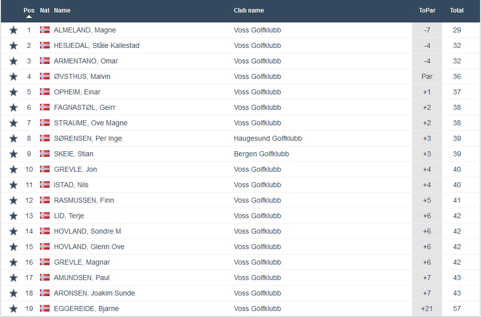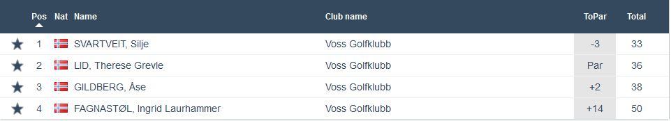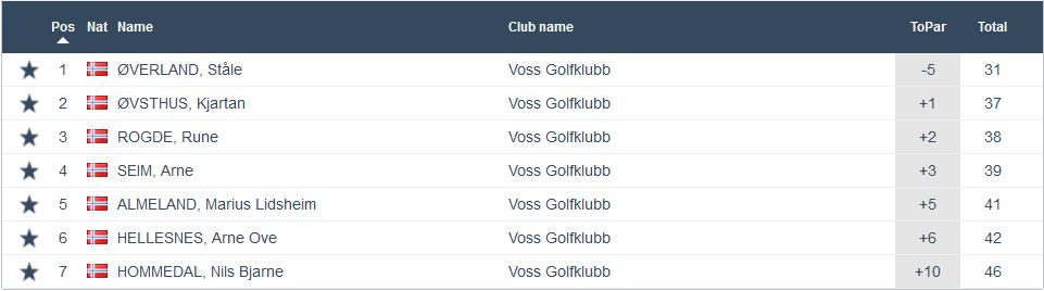 Nest siste runde i år og med 32 spelarar og mange fine scorar vart det ein fin kveld på golfbana for mange. Best av alle denne kvelden var Magne Almeland som gjekk heile 7 slag under sitt par. Ein kanonrunde av Magne som gav ein solid siger i klasse B framfor Omar Armantano og Ståle Hesjedal som gjekk på solide -4. I klasse A var Ståle Øverland i ein klasse for seg sjølv og vann med heile 6 slag med gode 5 slag under sitt par. Silje Svartveit gjekk ein god runde på -3 og vann klasse C. På -3 gjekk også det yngre blad Svartveit nemleg Mikkel og han vann dermed klasse D. Mikkel ligg også meget god ann til å vinne haustens Superrunde. Leiar stort framfor siste runde. I klasse E gjekk Yngve Johannessen på -1 og vann dermed denne klassen. Under kan ein sjå alle resultat frå kvar klasse.