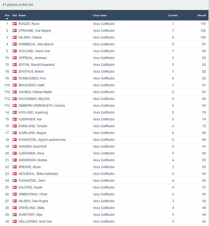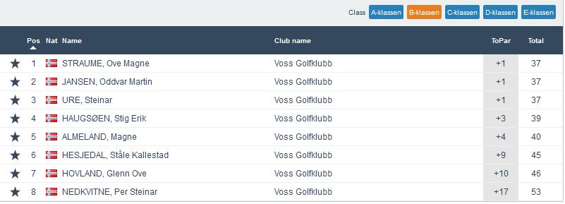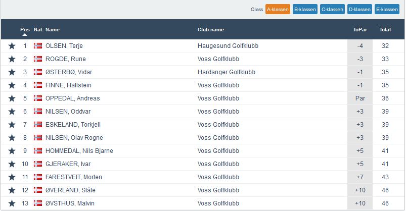 Årets siste superrunde på ein kvardag vart avgjort onsdags kveld. På ny veldig god deltaking med 31 spelarar. Jamnt i toppen, men det var ingen ringare enn Terje Olsen frå Haugesund GK som stakk av med sigeren på glimrande -4. Han vann då også klasse A. I klasse B var det faktisk tre som delte 1.plassen. Ove Magnar Straume, Oddvar Martin Jansen og Steinar Ure landa alle på +1. I klasse C vann Victoria Grønsleth Sibbern på +4. Veldig gledelig også denne gong at det var deltaking i klasse D. Mikkel Svartveit Sætre kom inn på +14 noko som må seiast å være godt over godkjent for ein junior. Flott spela! I klasse E var det også eit veldig bra resultat der Håvard Nedkvitne vann på -3. Me gratulerar alle vinnarar og takkar alle for godt frammøte.