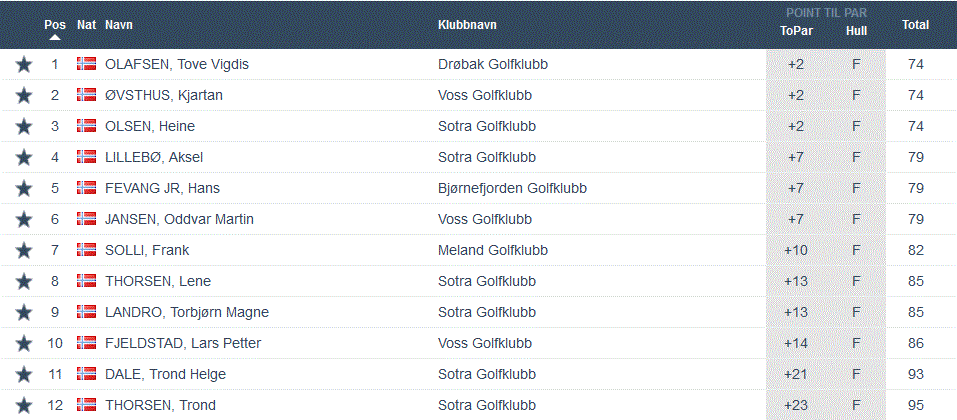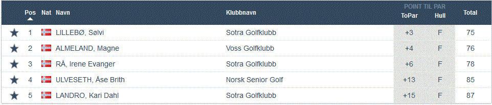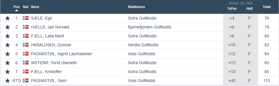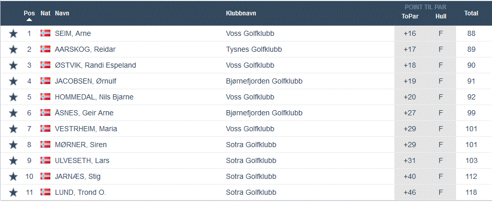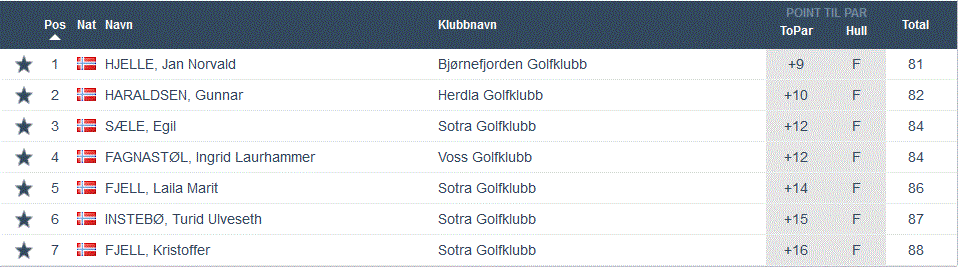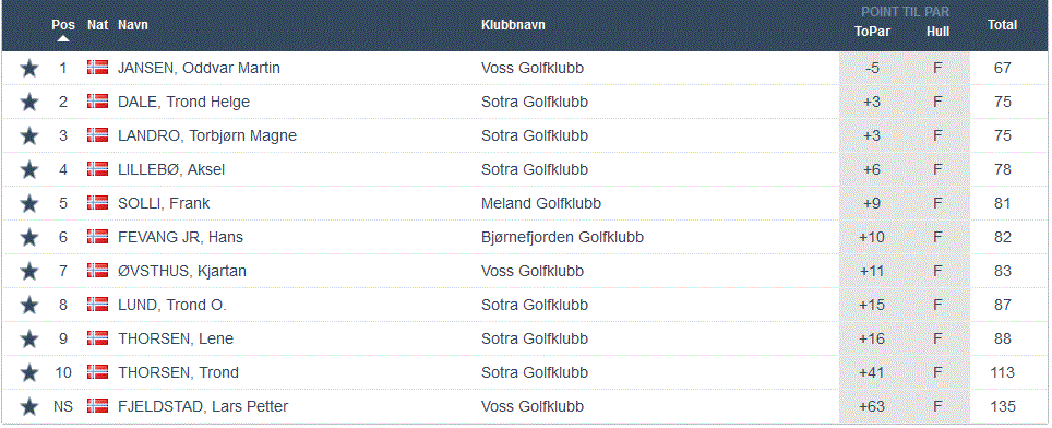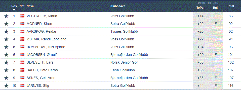 Denne helga har Voss Golfklubb arrangert Sissener Classic Tour. Det vart spelt både laurdag og søndag. Her var det deltakarar frå heile Vestland og resultata for dei to dagane ser du under.