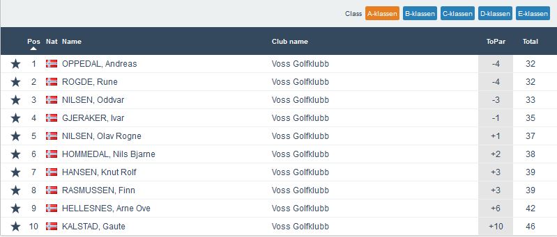 Superrunde 4 (haust) vart avholdt onsdag 28.august og ein kom seg akkurat i mål før det verste regnværet satte inn. Mange veldig gode scorar og best av alle var Ørjan Brekke på -6. Han vann dermed klasse B. Vinnarane i dei andre klassane var Andreas Oppedal og Rune Rogde på -4 i klasse A. Randi Espeland Østvik på -2 i klasse C og Victoria Sibbern Grønsleth på -1 i klasse E. 29 deltakrar ellers og god stemning. Fulle resultatlister føl under. Heilt nederst har me også fått inn nokre fine bilder frå kvelden.