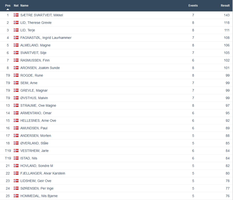 Siste runde vart spelt denne onsdagen og då har me endeleg fått ein samanlagtvinnar for haustens Superrunde. Det vart ingen ringare enn Mikkel Sætre Svartveit. Ungguten var soleklart best etter dei åtte rundane no i haust med ein samla poengsum på 143 poeng.  På andreplass kom Therese Grevle Lid med 118 og på tredje plass Terje Lid  på 111. Resultatliste for dei 25 første plassane finn du under.