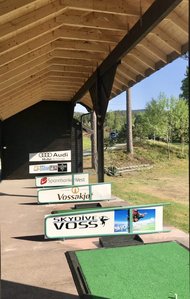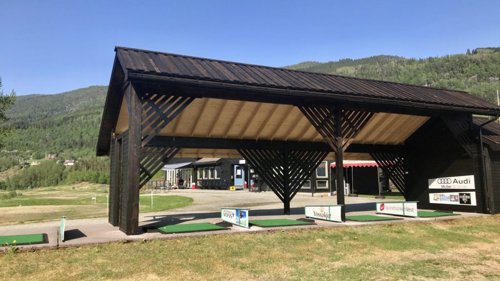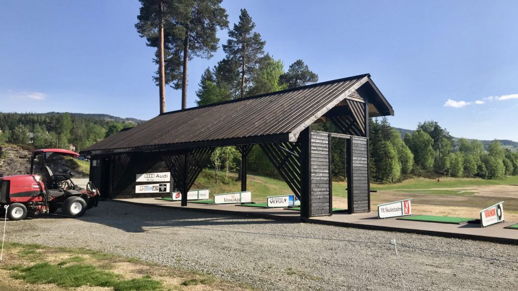 Då er bygg over ballautomat og 4 utslag på driving range ferdig, og for eit flott bygg det vart! Frå dei fyrste ideene begynte å ta form i fjor haust så har me effektivt fått på plass økonomien, tegningar, levering og oppføring i rekordfart.