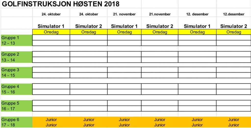 Onsdag 24. oktober (kan også bli ute dersom open Driving Range)