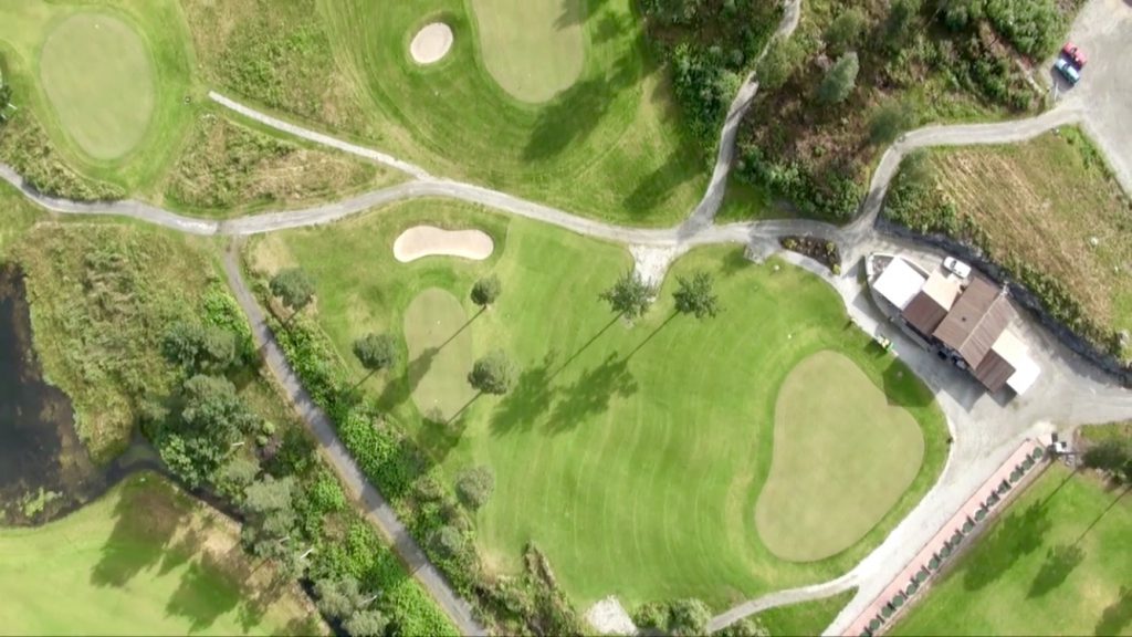 Driving range har takoverbygg over ballautomat og 4 utslag, så sjølv på ein regntung dag kan de stå tørt og godt og trena på svingen her!