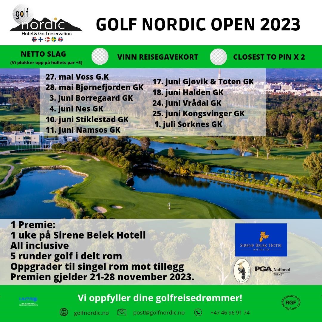 Laurdag vert ei av dei gjevaste turneringane spelt på Voss Golfbaner. Golf Nordic Open er turneringa der vinnaren får ei vekes opphald i Tyrkia med all-inclusive.
