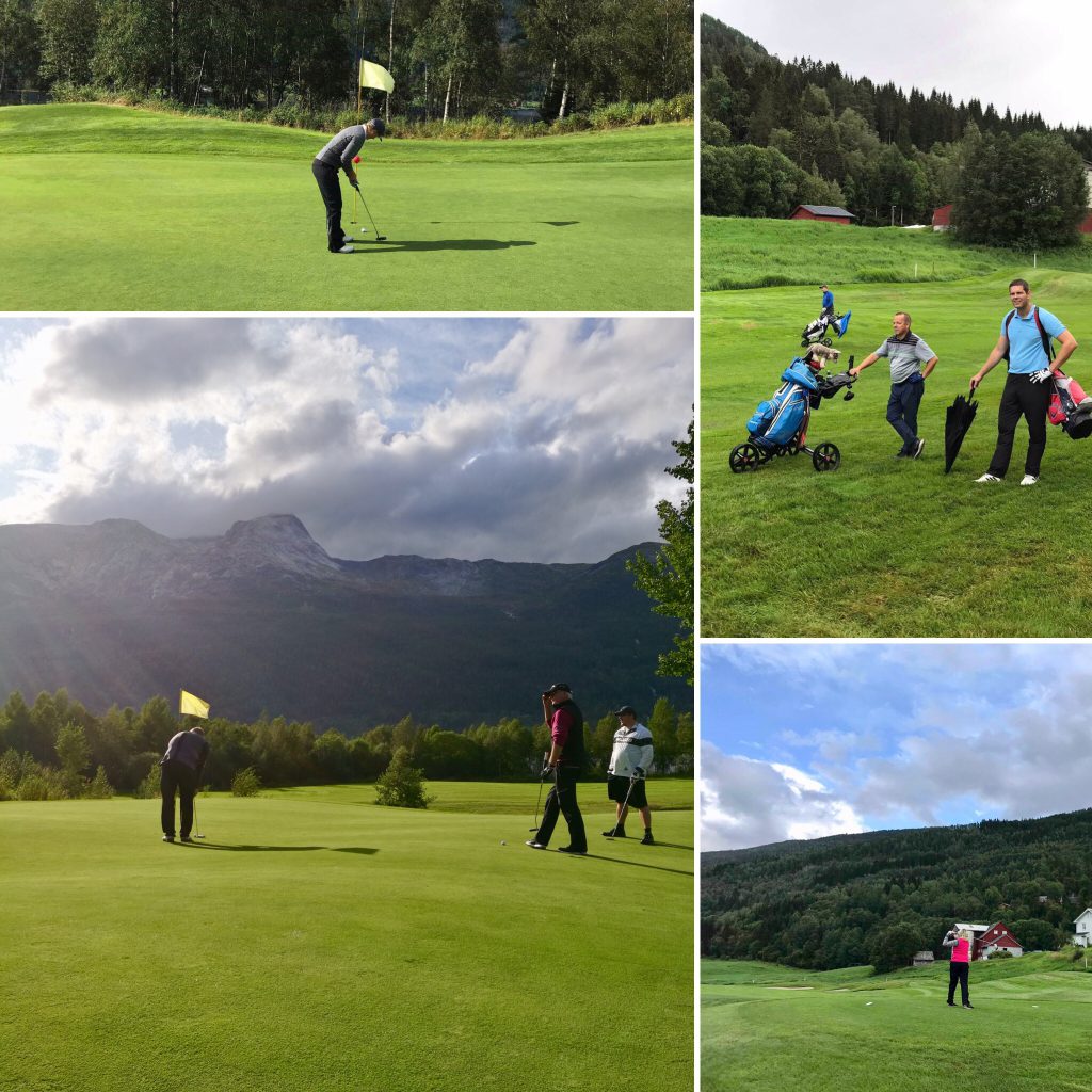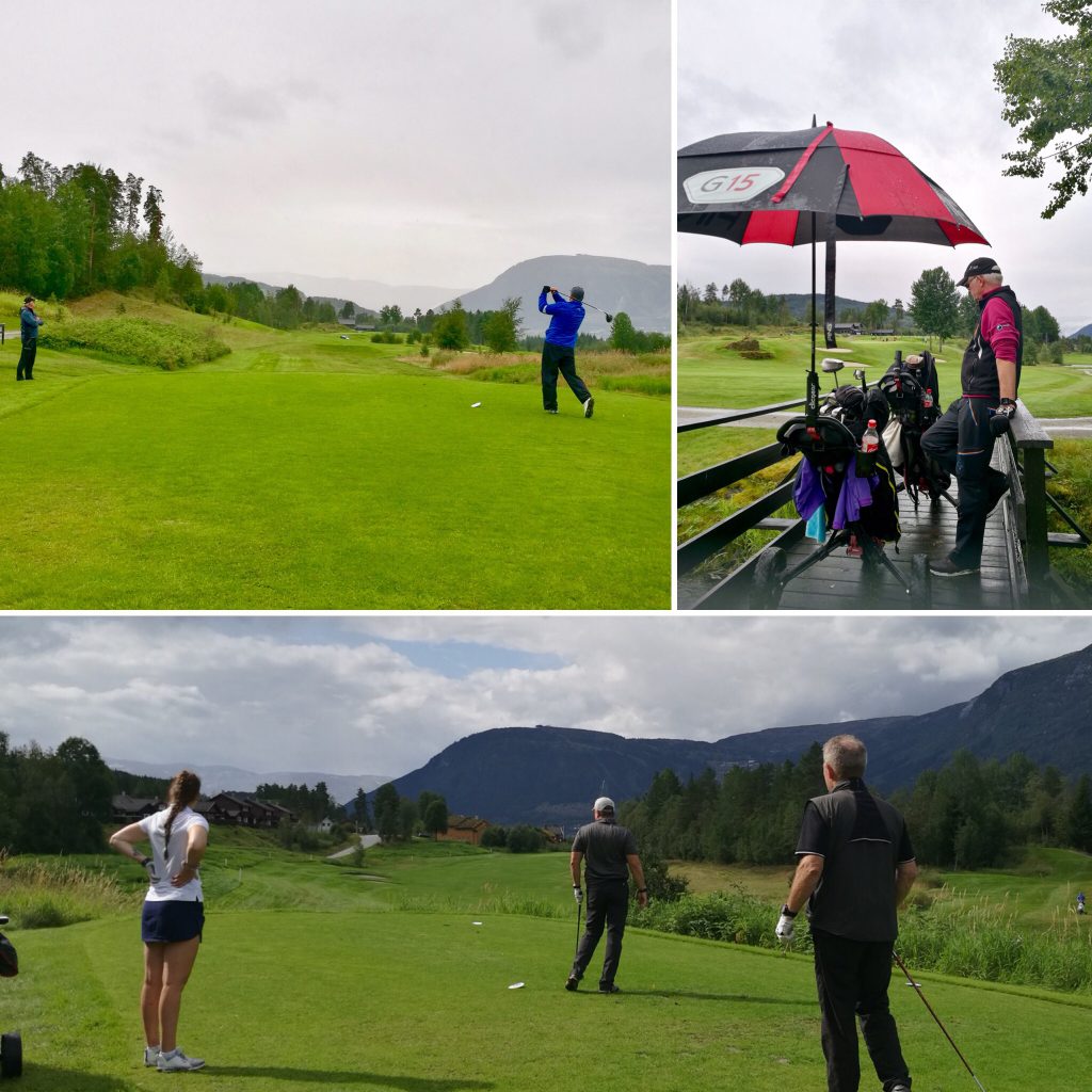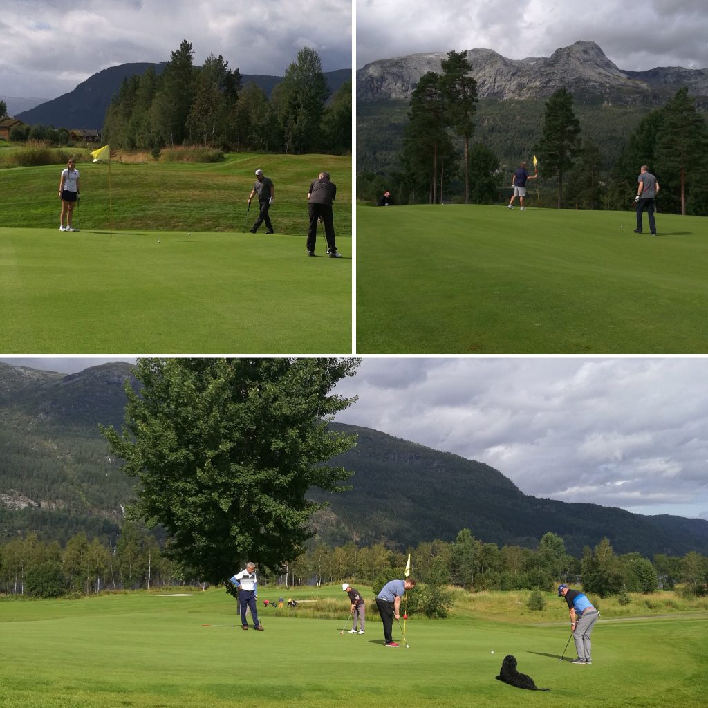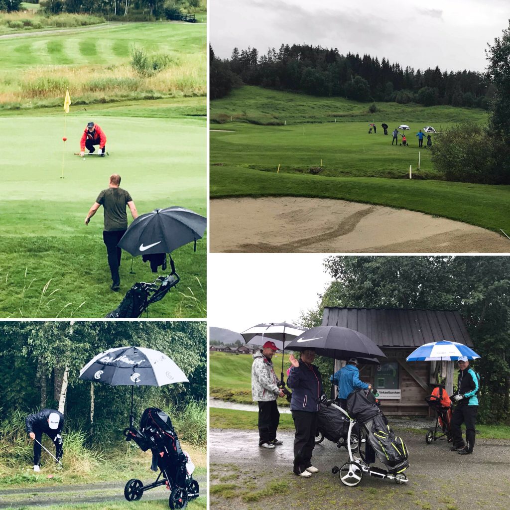 Nedanfor ein del bilde frå rundt omkring på banen både lørdag og søndag. Og som de ser; været vart som vanlig ikkje så gale som meldt, med alt frå strålande sol til litt kraftige regnbyger, og det var ivrige og glade golfarar rundt omkring på heile banen!🏌️♀️🏌️♂️